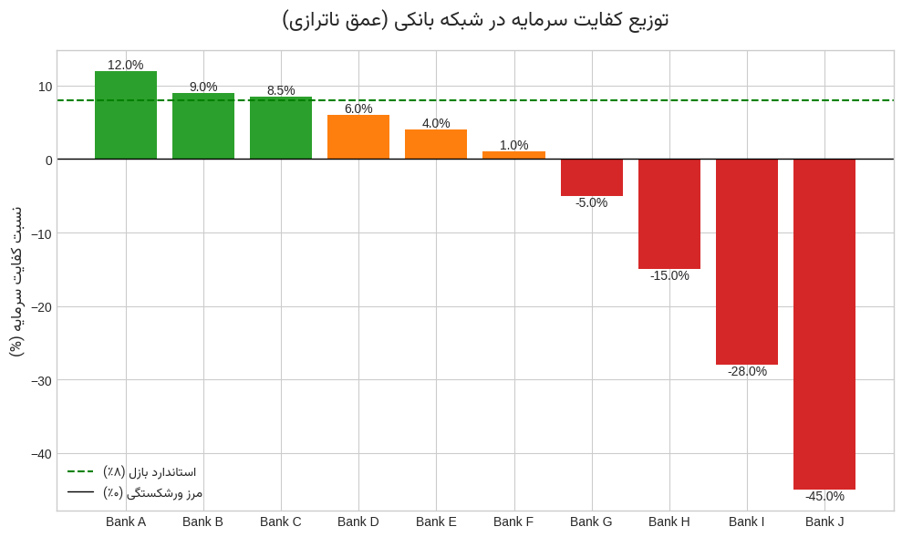 اگر CAR زیر این حد باشد (یا منفی شود)، بانک عملاً در وضعیت شکننده سرمایهای است.
