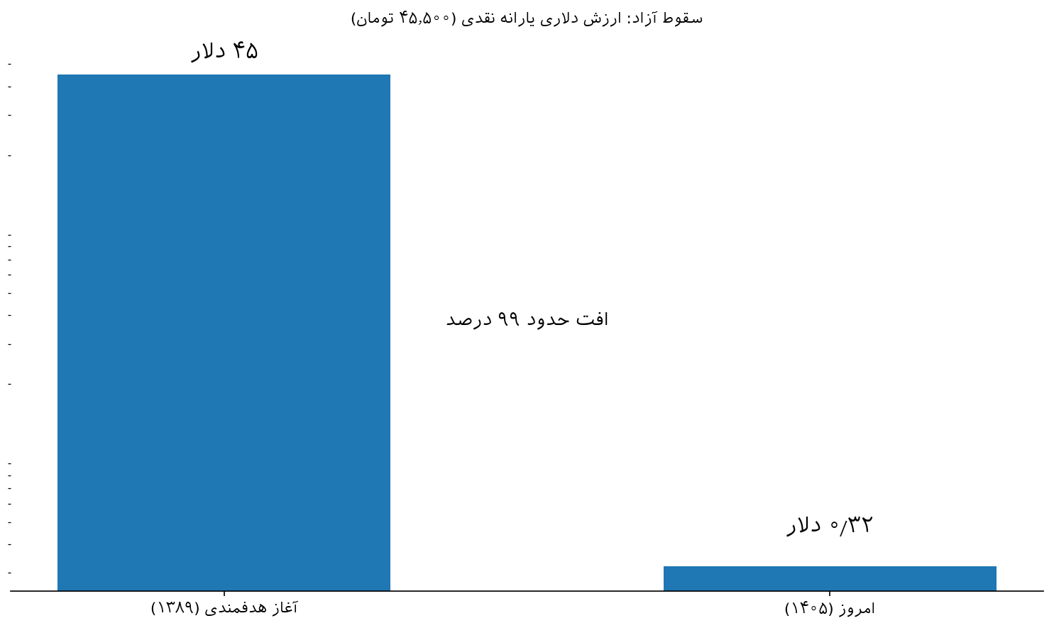 «یارانه ۴۵,۵۰۰ تومانی از حدود ۴۵ دلار به حدود ۰٫۳۲ دلار سقوط کرده است.»